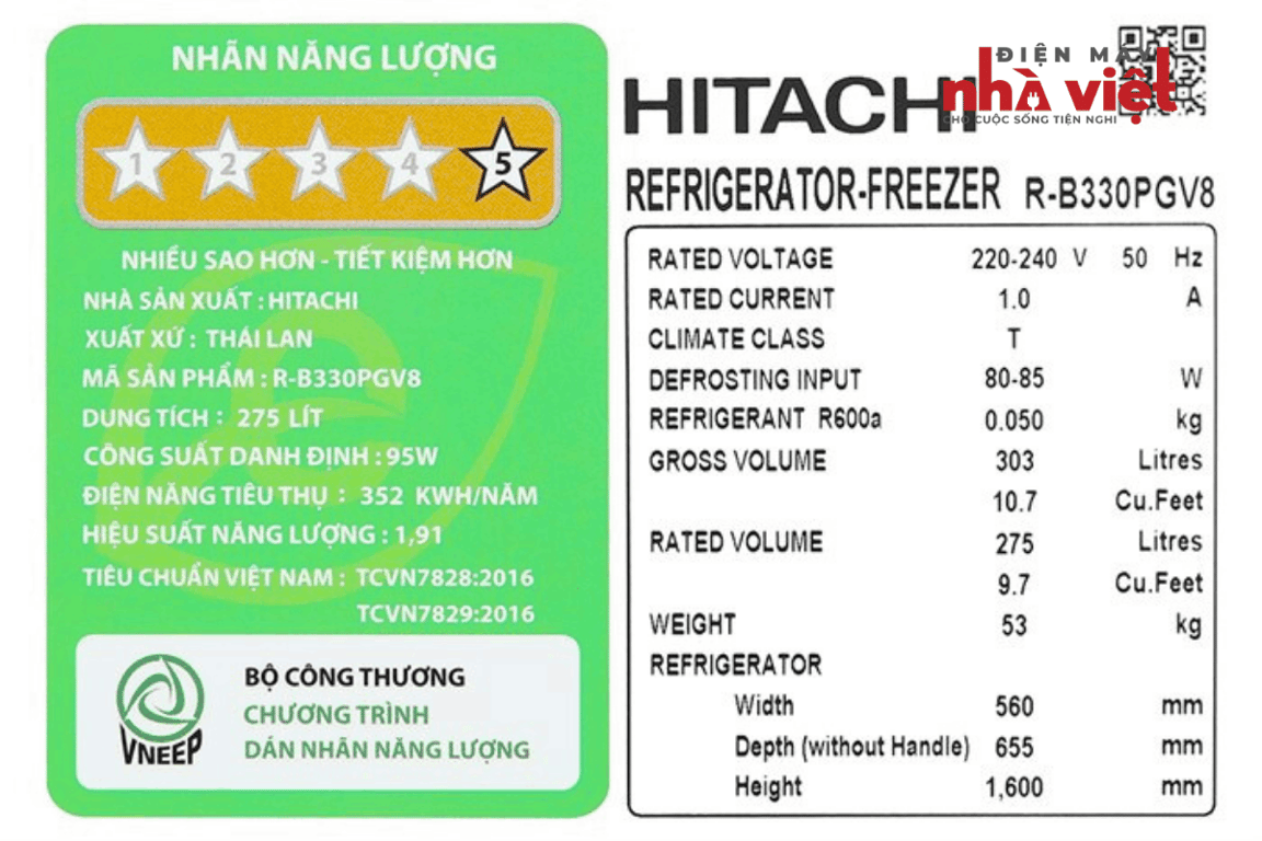 - Sản phẩm đạt tem năng lượng 5 sao với hiệu suất tiêu thụ khoảng 0.96 kW/ngày.