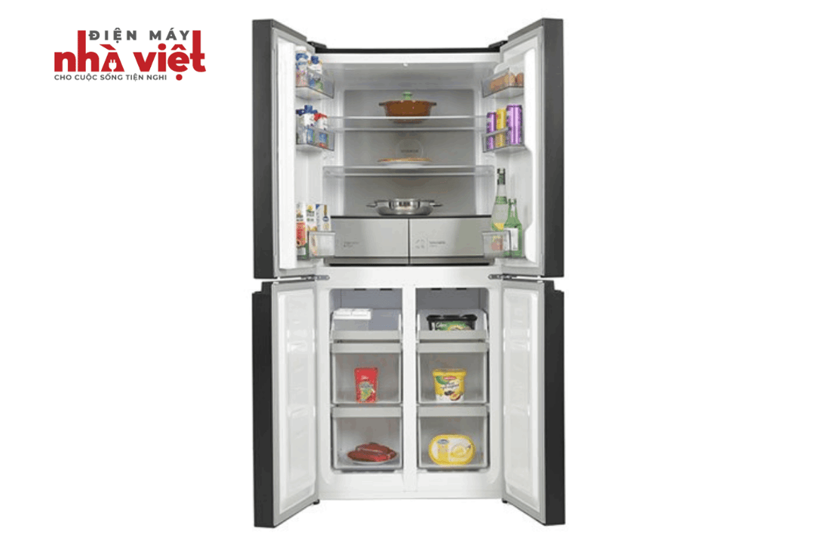 - Kiểu dáng tủ lạnh Multi Door trang bị 4 cánh cửa bằng thép không gỉ rắn chắc, chịu lực tốt cho bạn thao tác đóng mở nhẹ nhàng.