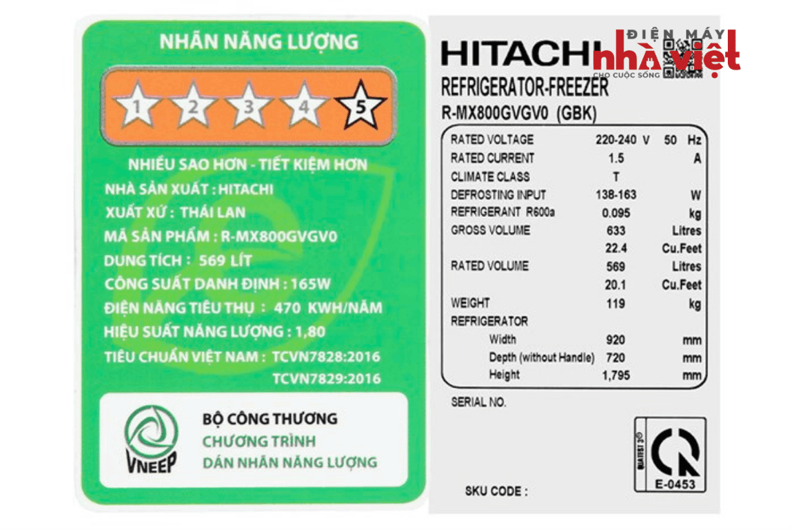 - Hitachi R-MX800GVGV0 GBK thuộc dòng tủ lạnh lớn - Side by side có 3 cánh cửa, thiết kế thanh lịch từ bên trong đến bên ngoài, các chi tiết tinh tế, tông màu xám thời thượng, tạo điểm nhấn cho gian bếp thêm cao cấp, hiện đại.