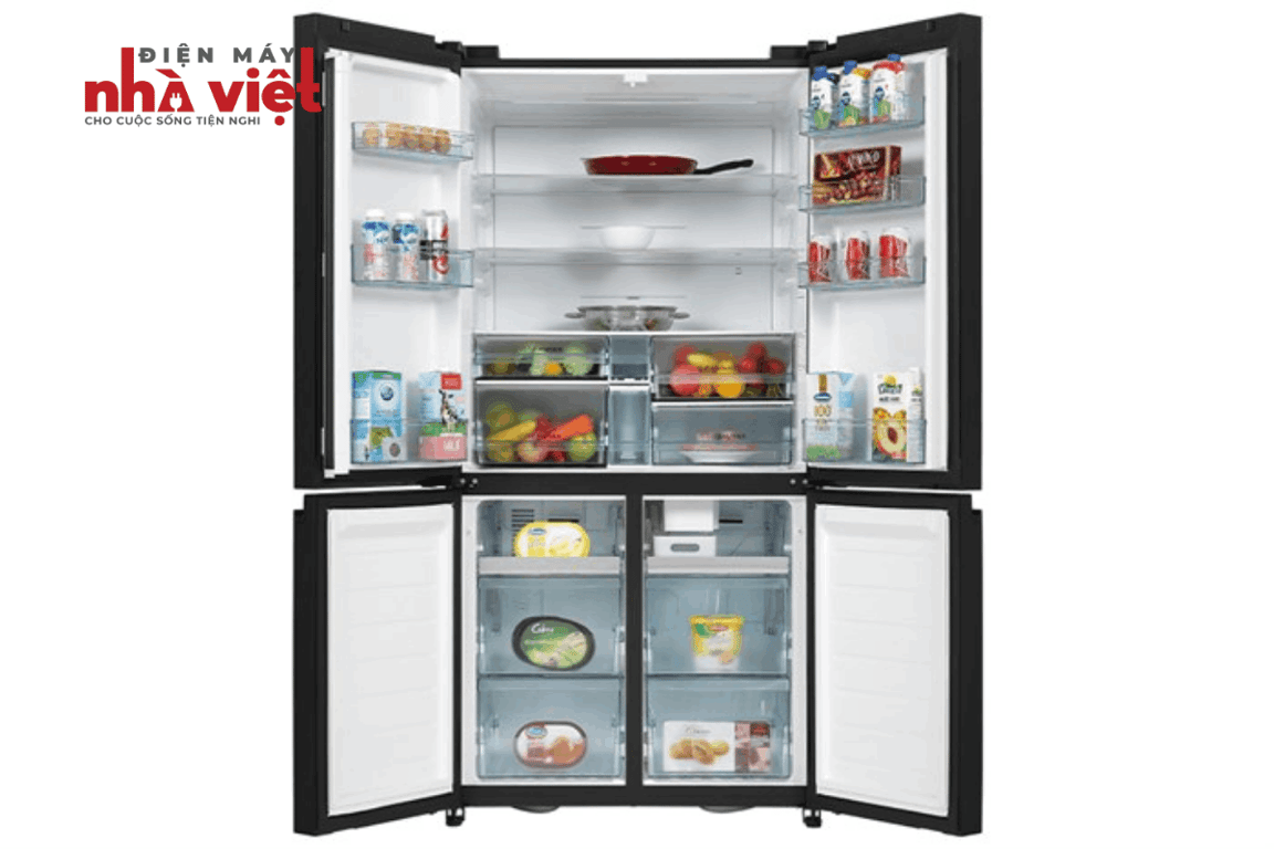- Kiểu tủ Multi Door 4 cánh rộng rãi, ngăn đá bên dưới dễ sử dụng và tiện lợi.