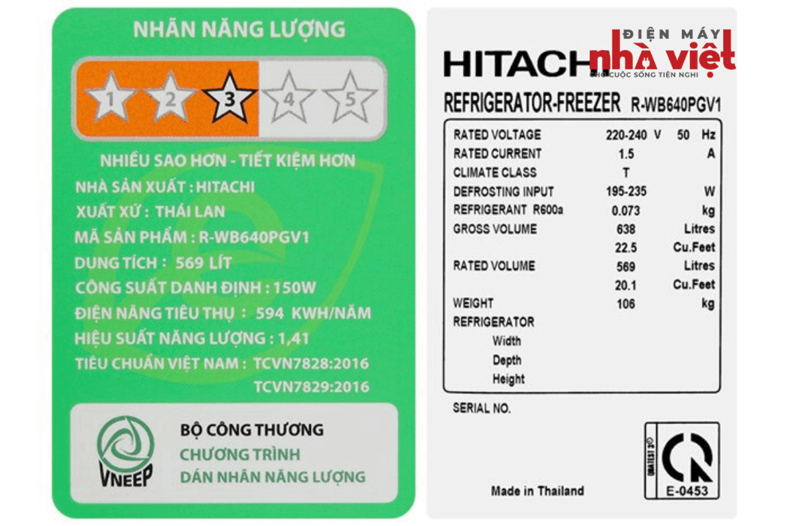 Lưu ý: Khi mua tủ lạnh Hitachi Inverter 569 lít R-WB640PGV1 GCK từ ngày 01/12/2022 sẽ được bảo hành động cơ máy nén 10 năm và bảo hành máy 2 năm. Các sản phẩm mua trước ngày 01/12/2022 đều được bảo hành động cơ máy nén và tủ lạnh 1 năm.