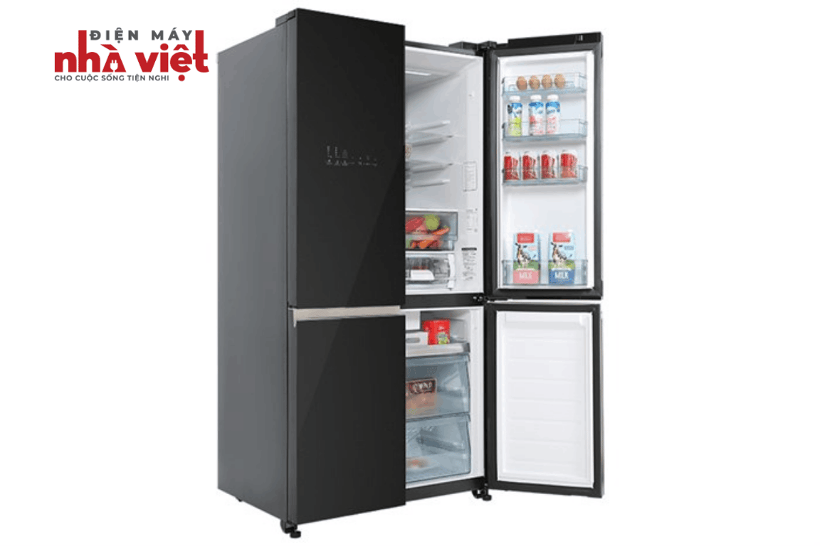 - Tủ lạnh cỡ lớn Multi Door - 4 cửa với chất liệu cửa tủ bằng kính dễ lau chùi, sáng bóng giúp gian bếp thêm nổi bật, tinh tế hơn.