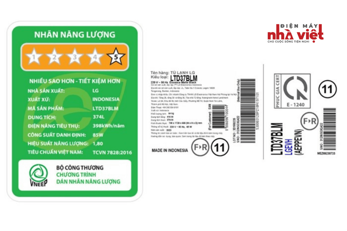 - Dung tích sử dụng 374 lít phù hợp với các gia đình từ 3 - 4 thành viên.