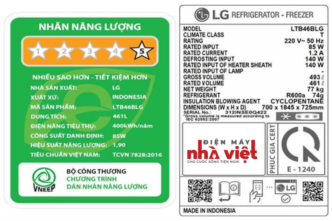 Mẫu tủ lạnh LG ngăn đá trên này sở hữu dung tích thực là 461L. Vì thế đây là một lựa chọn khá phù hợp với nhu cầu bảo quản thực phẩm của gia đình có từ 4 – 5 thành viên.