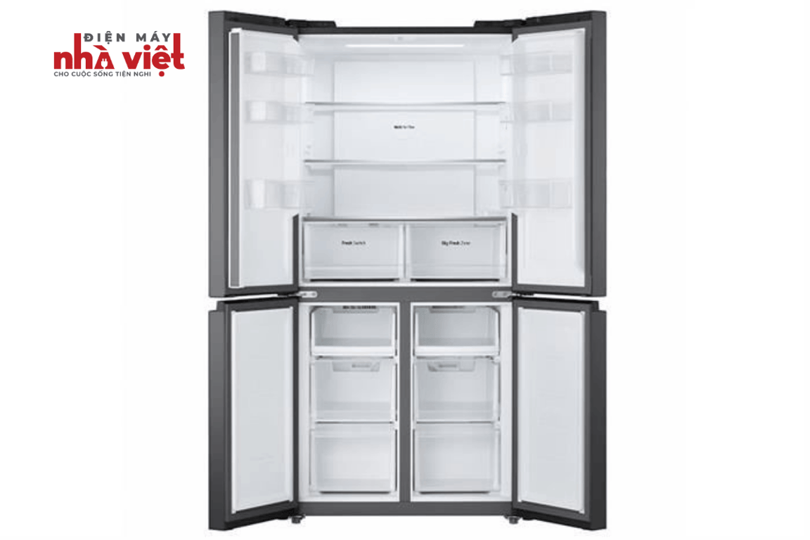 Tủ lạnh LG dòng Multi doors 4 cánh với cửa gương Đen sang trọng