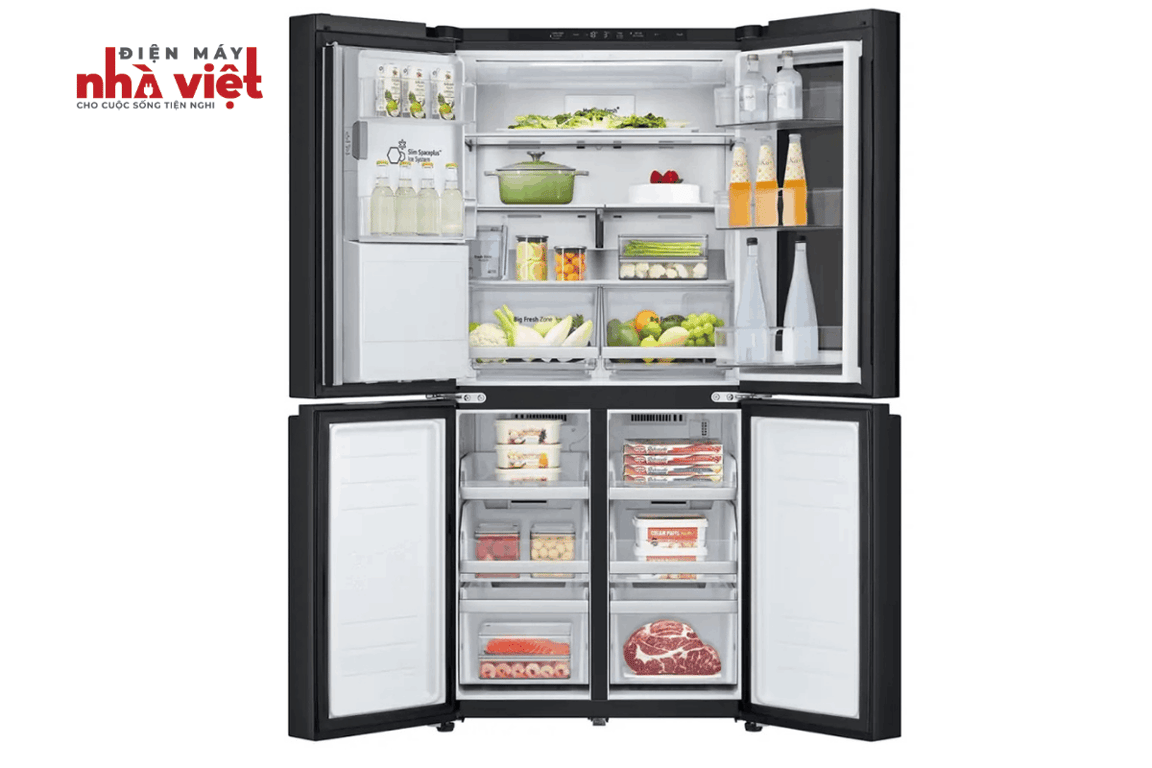 - Tủ lạnh LG Inverter 508 lít Multi Door InstaView LFI50BLMAI có thiết kế Multi Door 4 cánh sang trọng, hiện đại. Cửa tủ được làm từ chất liệu PCM có độ bền cao cùng màu đen giúp bạn có thể dễ dàng trưng bày cùng các nội thất khác trong không gian bếp.