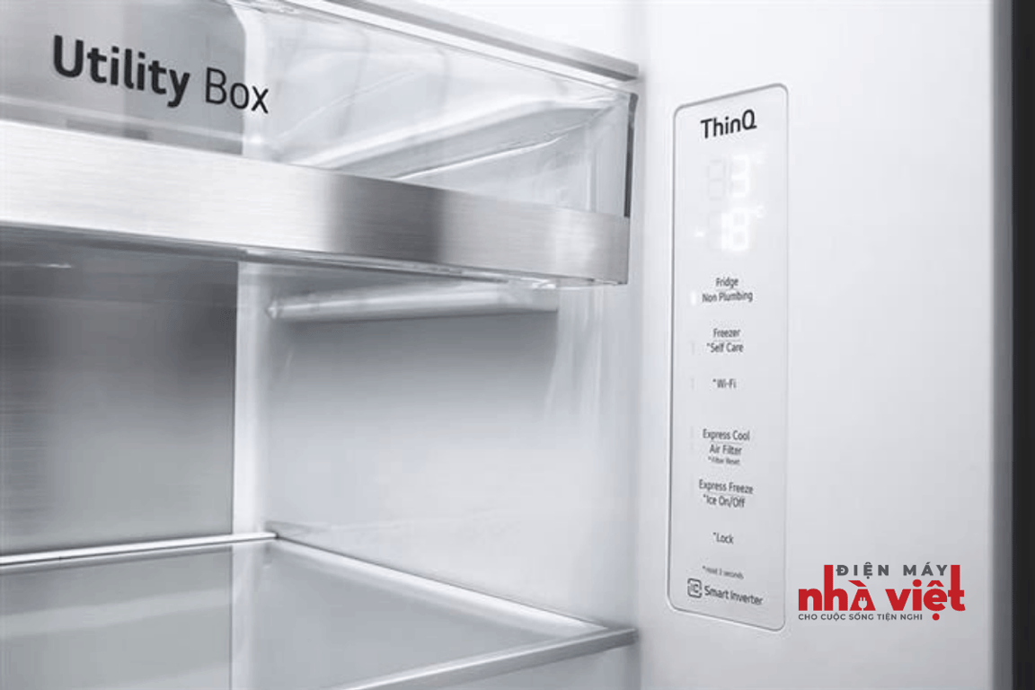 - Điểm khác biệt của chiếc tủ lạnh này là thiết kế dạng Side By Side và được kết hợp thêm cánh cửa phụ InstaView giúp tủ trông sang trọng hơn. Cánh cửa phụ này giúp bạn có thể lấy thực phẩm thông qua phần cánh cửa phụ mà không cần mở toàn bộ cánh, ngoài ra với thao tác gõ nhẹ 2 cái lên cánh tủ đèn sẽ tự động bật sáng giúp bạn dễ dàng thấy được lượng thực phẩm có bên trong.
