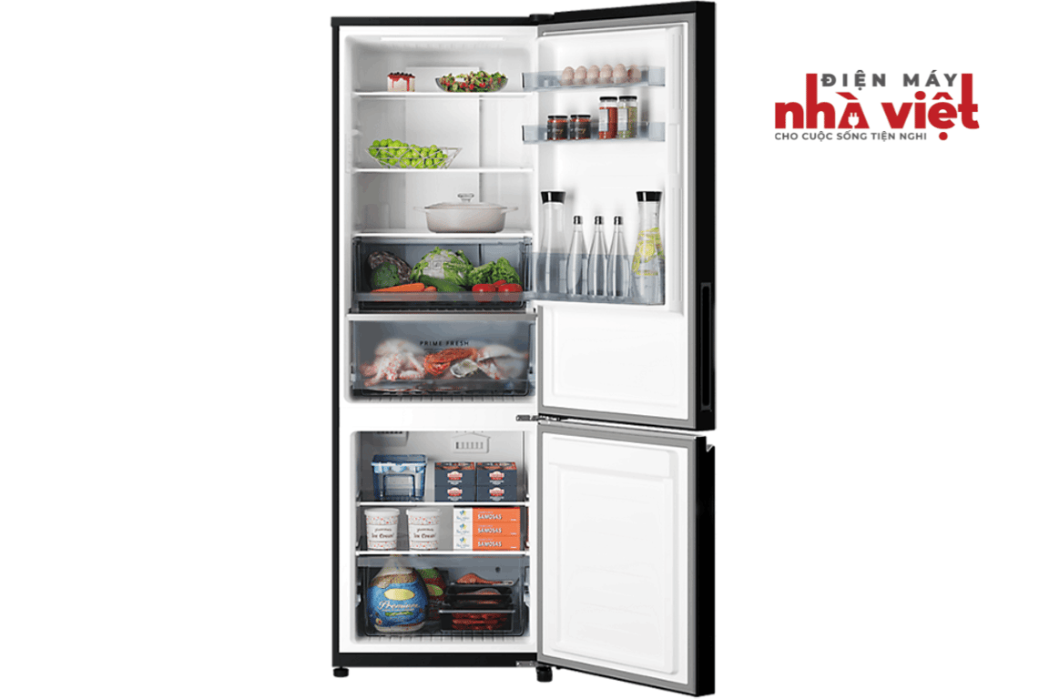 Tủ lạnh Panasonic 255 lít NR-BV281BVKV nổi bật với thiết kế phẳng tinh tế, cửa tủ kim loại đen sang trọng phù hợp với không gian nội thất hiện đại. Tủ lạnh 2 cửa này có thiết kế ngăn đá phía dưới thay vì ngăn đá trên như các dòng sản phẩm phổ thông cũ. Cách bố trí ngăn mát ở trên sẽ vô cùng tiện lợi bởi ngăn mát là nơi được dùng thường xuyên hơn, người dùng sẽ không cần cúi người khi lấy thực phẩm. Dung tích sử dụng 255lít, trong đó, ngăn lạnh dung tích 170 lít, ngăn đá 85 lít phù hợp với nhu cầu sử dụng của gia đình 2 - 3 người. Bạn sẽ thoải mái dự trữ thực phẩm cho gia đình trong nhiều ngày mà vẫn đảm bảo độ tươi ngon, an toàn cho sức khỏe.