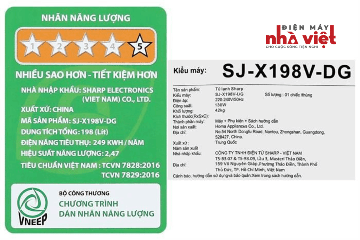 Nhìn chung, tủ lạnh Sharp Inverter 181 lít SJ-X198V-DG có dung tích 181 lít phù hợp với gia đình có từ 2 - 3 thành viên, tủ còn được trang bị công nghệ Inverter giúp tiết kiệm điện năng vận hành êm ái, bộ lọc khử mùi than hoạt tính Nano Ag+ giúp không khí trong tủ luôn sạch sẽ, trong lành.