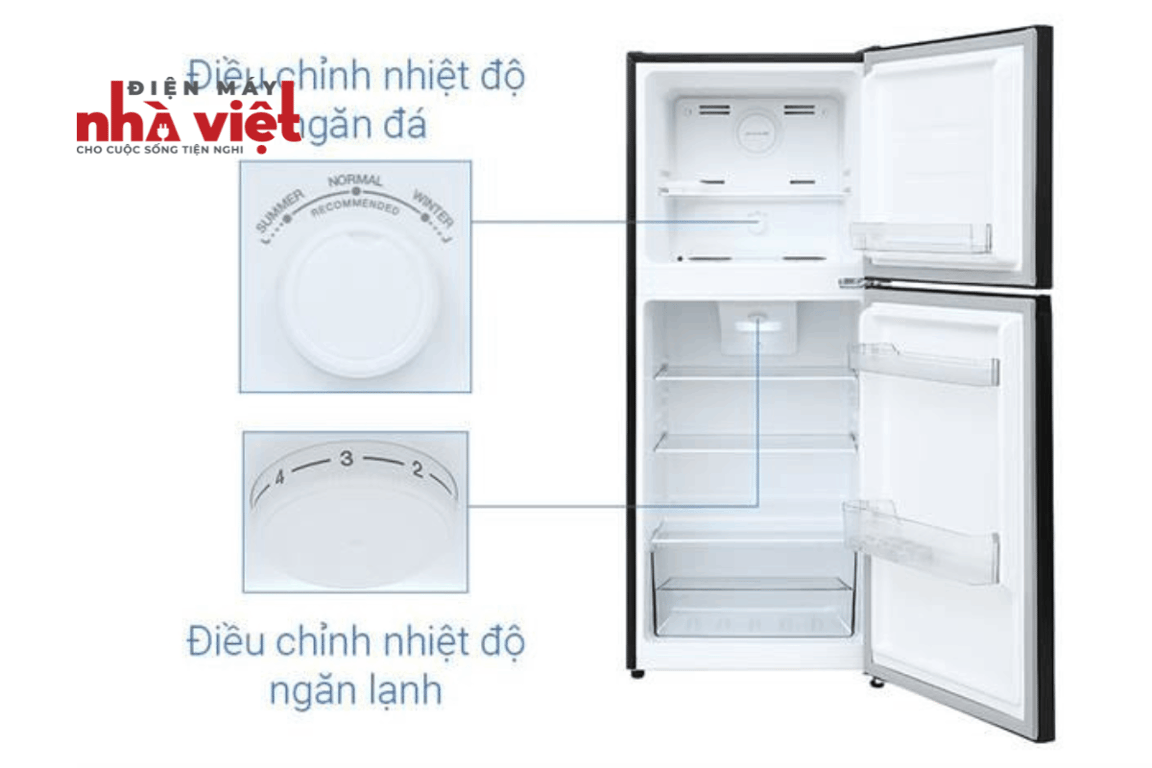 - Ngăn đá có 2 ngăn chứa giúp việc lưu trữ và cấp đông cho thực phẩm thêm ngăn nắp, gọn gàng.