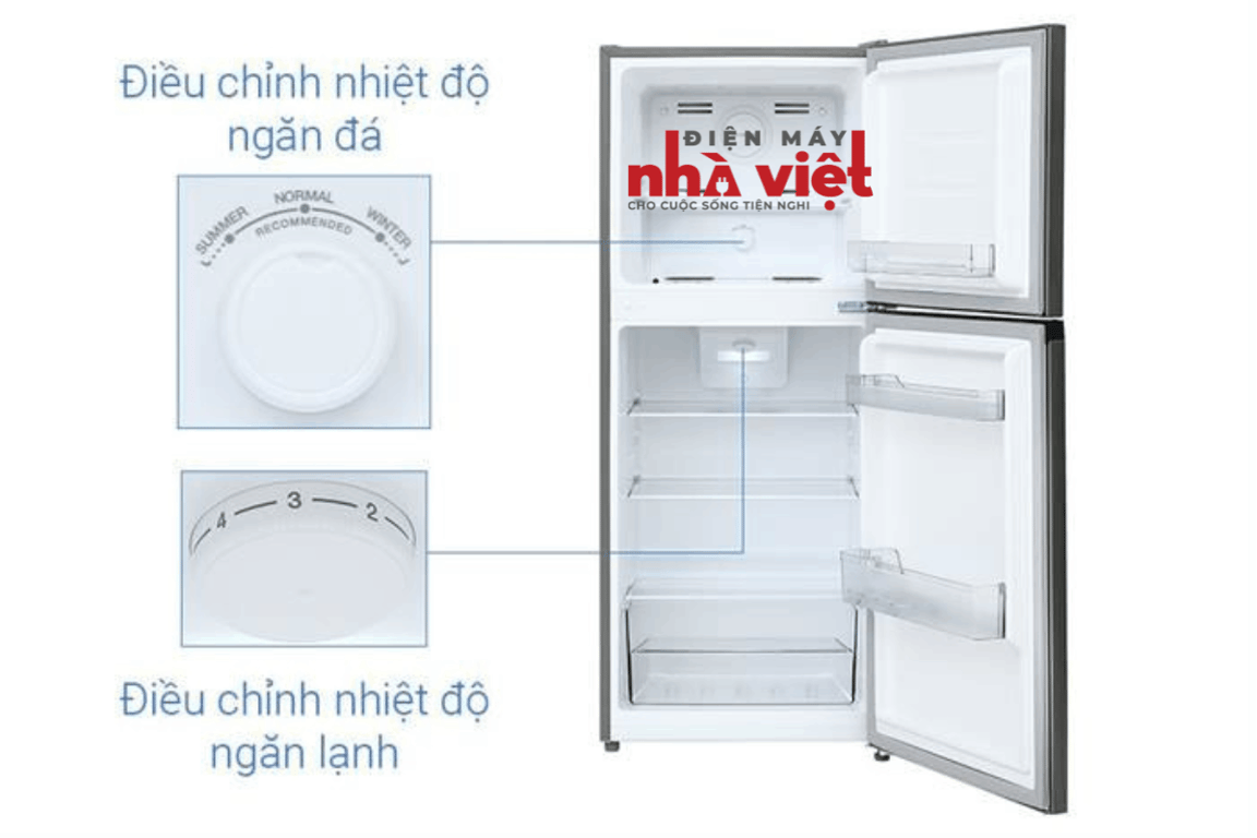 - Dung tích ngăn lạnh 132 lít cùng các khay chia tủ thành nhiều ngăn và 1 hộc rau củ quả, giúp bạn dễ dàng phân bố và bảo quản các loại thực phẩm gọn gàng.