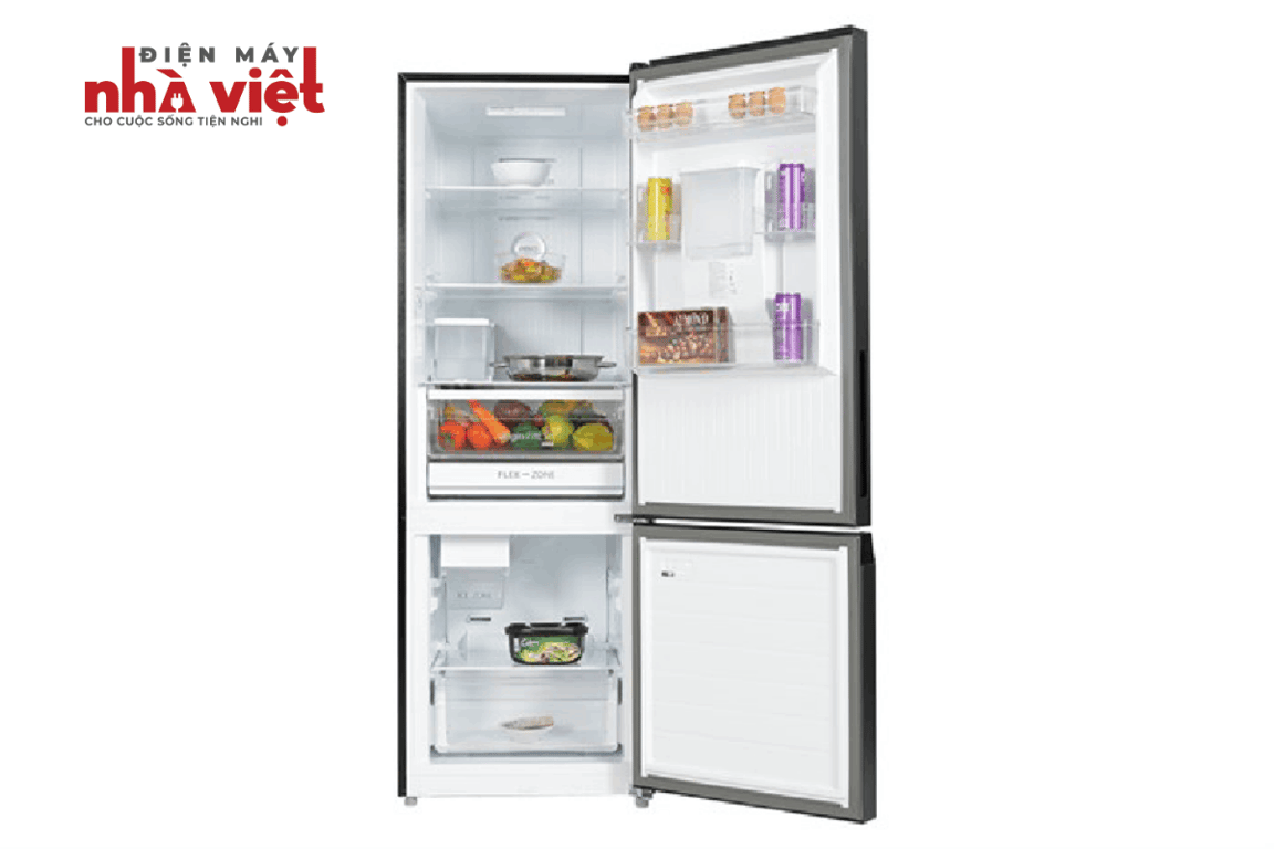 - Dung tích 231 lít, bên trong thân tủ và ở cánh cửa tủ chia làm nhiều kệ, 1 ngăn đựng rau củ quả và ngăn đông mềm Flex-zone cho bạn sắp xếp thực phẩm và đồ dùng ngăn nắp theo thói quen của gia đình mình.