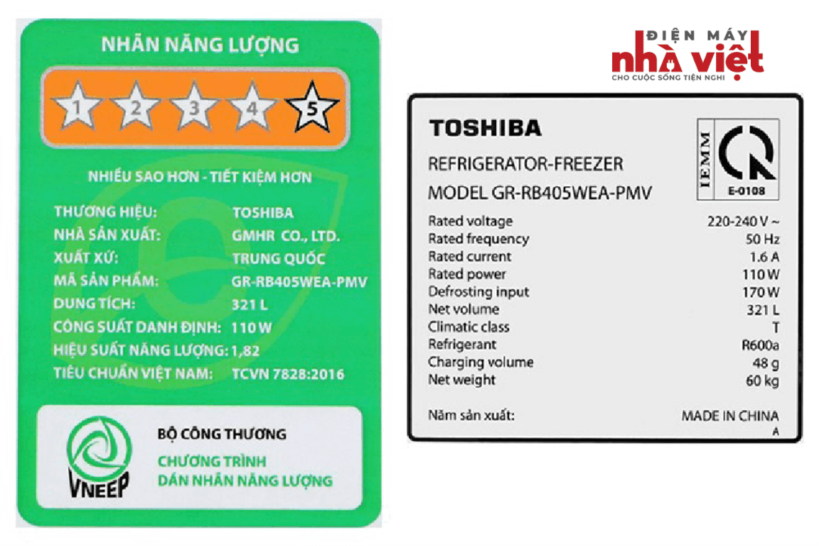 - Tem năng lượng 5 sao. Công suất tiêu thụ công bố theo TCVN ~ 0.87 kW/ngày.