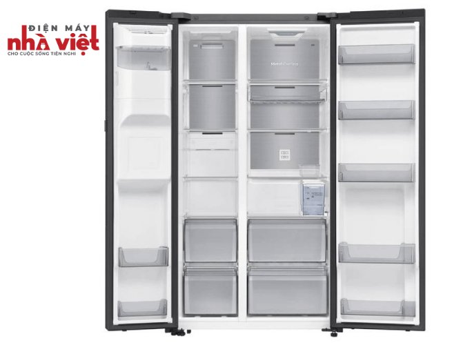 Công nghệ Metal Cooling duy trì nhiệt độ ổn định bên trong tủ, giúp thực phẩm tươi ngon như mới; đồng thời khôi phục nhiệt độ sau mỗi lần đóng mở tủ để hạn chế sự thất thoat nhiệt. Tấm kim loại làm từ vật liệu cao cấp, dễ lau chùi.