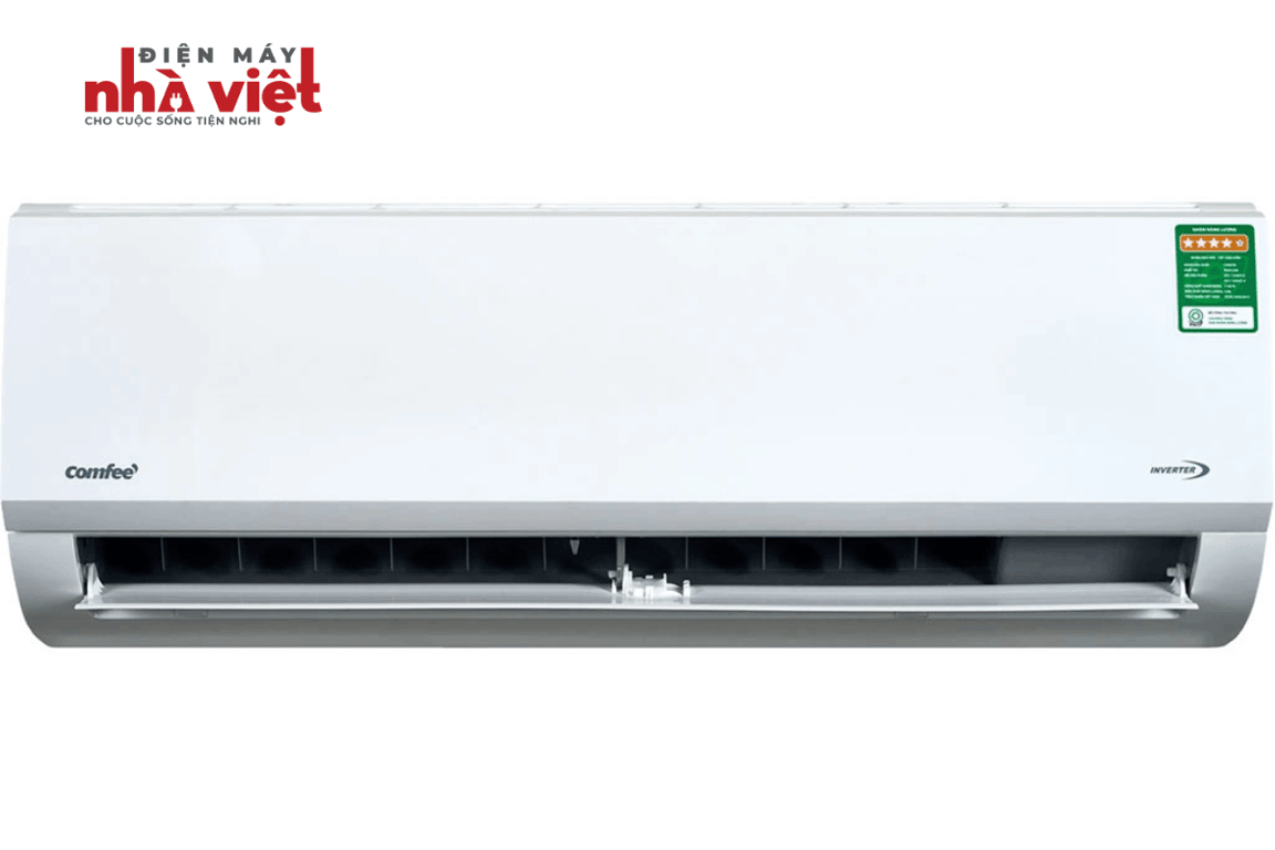 Điều hòa Comfee 1 chiều Inverter 17500 BTU CFS-18VAFThiết kế sang trọng, màn hình hiển thị nhiệt độ dàn lạnh tiện lợiĐiều hòa Comfee 1 chiều Inverter 17500 BTU CFS-18VAF sở hữu thiết kế hiện đại, được trang bị màn hình LCD trên dàn lạnh giúp quan sát nhiệt độ tiện lợi hơn vào ban đêm. Máy còn được kết nối wifi điều khiển bằng điện thoại thông minh dễ dàng. Với kiểu dáng nhỏ gọn kết hợp cùng màu trắng sang trọng mang đến không gian nội thất tiện nghi, hài hòa cho căn phòng nhà bạn.