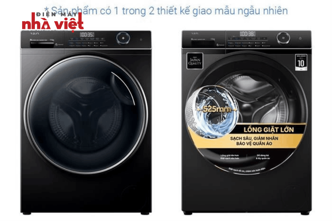 - Lồng giặt lớn với đường kính lên đến 525 mm, không gian lồng giặt lớn nên tăng không gian rơi thả tối đa, giảm xoắn rối và tiết kiệm diện tích.