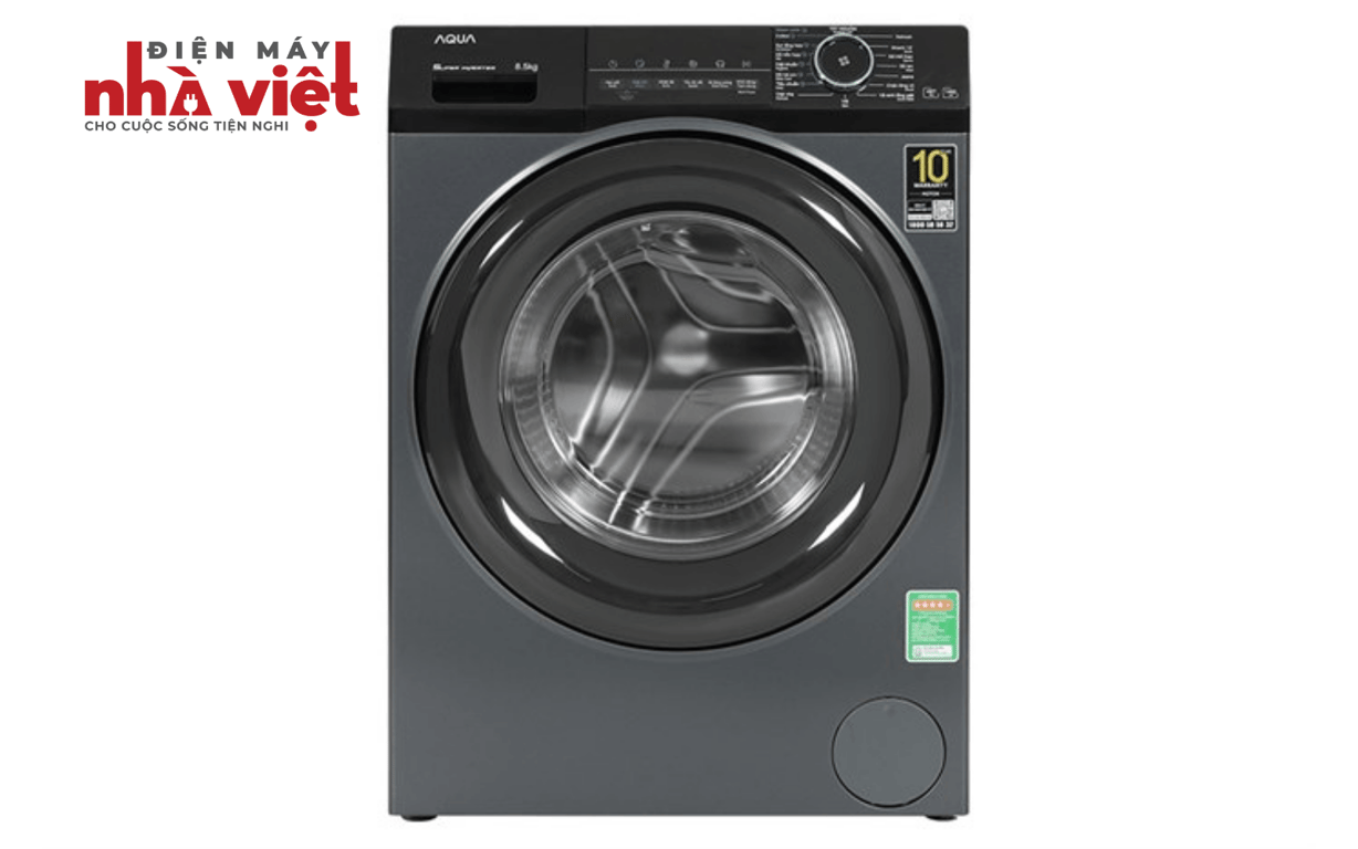 Máy giặt Aqua Inverter 8.5 kg AQD-A852J BK được thiết kế hiện đại theo kiểu dáng máy giặt lồng ngang, lồng giặt lớn 525 mm nâng cao hiệu quả giặt giũ, giảm xoắn rối áo quần. Công nghệ cân bằng AI DBT giúp máy vận hành êm ái, ổn định. Truyền động gián tiếp dây curoa kết hợp cùng động cơ Inverter giúp tiết kiệm điện năng tiêu thụ.