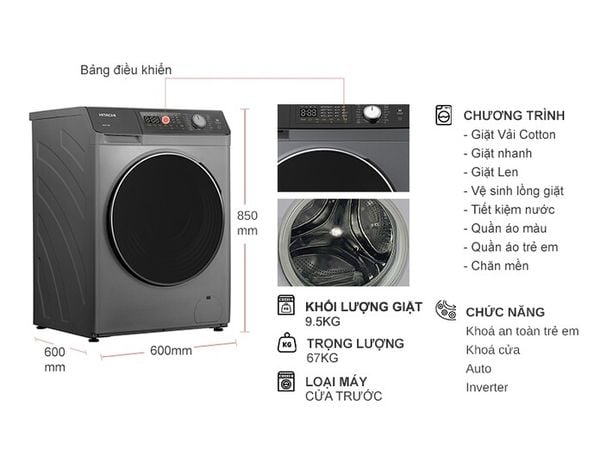 Máy Giặt Hitachi Inverter 9.5 Kg BD-954HVOS có thiết kế tinh tế