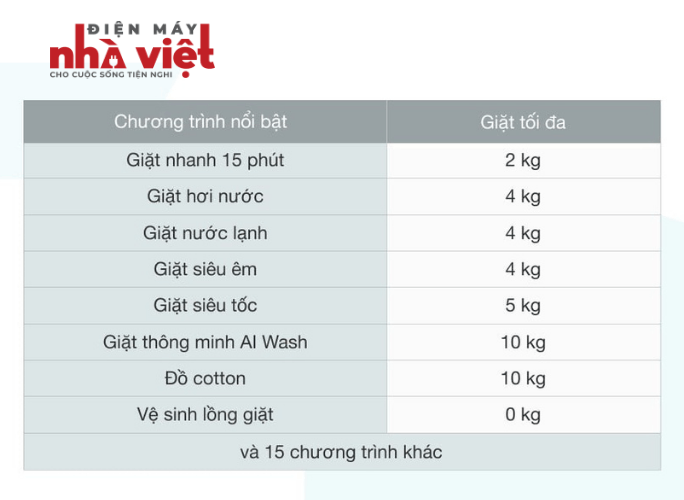 Khối lượng giặt 10 kg, phù hợp gia đình 5 - 7 người