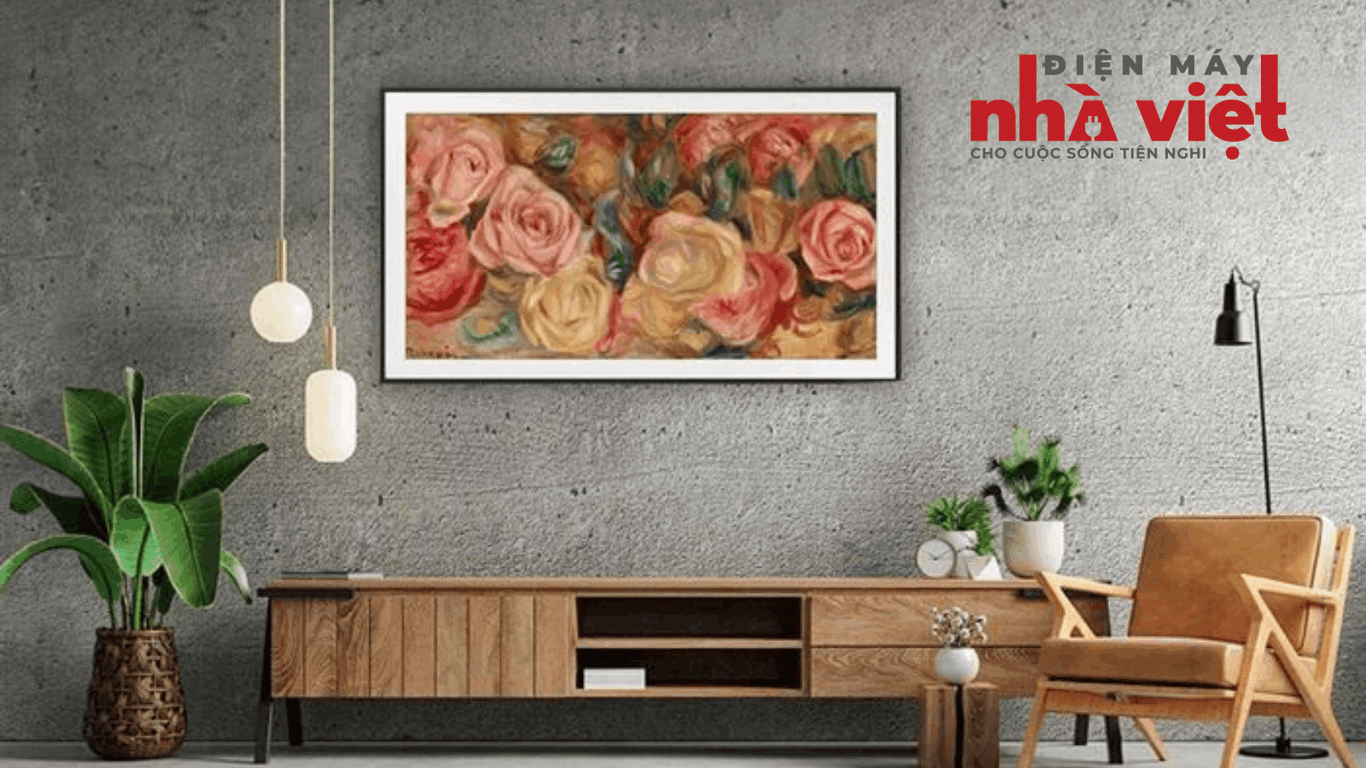 - Bật lên là tivi, tắt đi là khung tranh mang dáng vóc của một tác phẩm nghệ thuật, thích hợp để trang trí không gian phòng khách, phòng ngủ, phòng trưng bày,… đặc biệt phù hợp với những người yêu hội họa, yêu nghệ thuật.