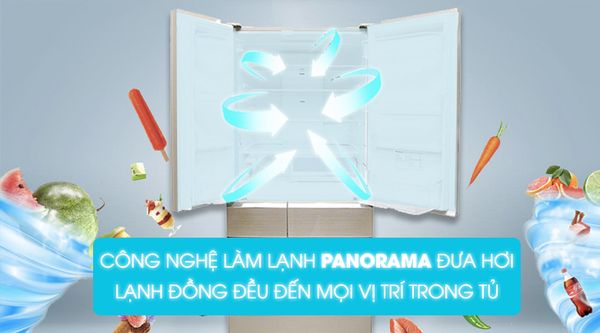 Nhờ trang bị công nghệ Pannorama có khả năng mang hơi lạnh lan tỏa theo dạng vòng cung đến từng ngóc ngách của tủ, thực phẩm sẽ được bảo quản tươi ngon trong trạng thái tốt nhất.